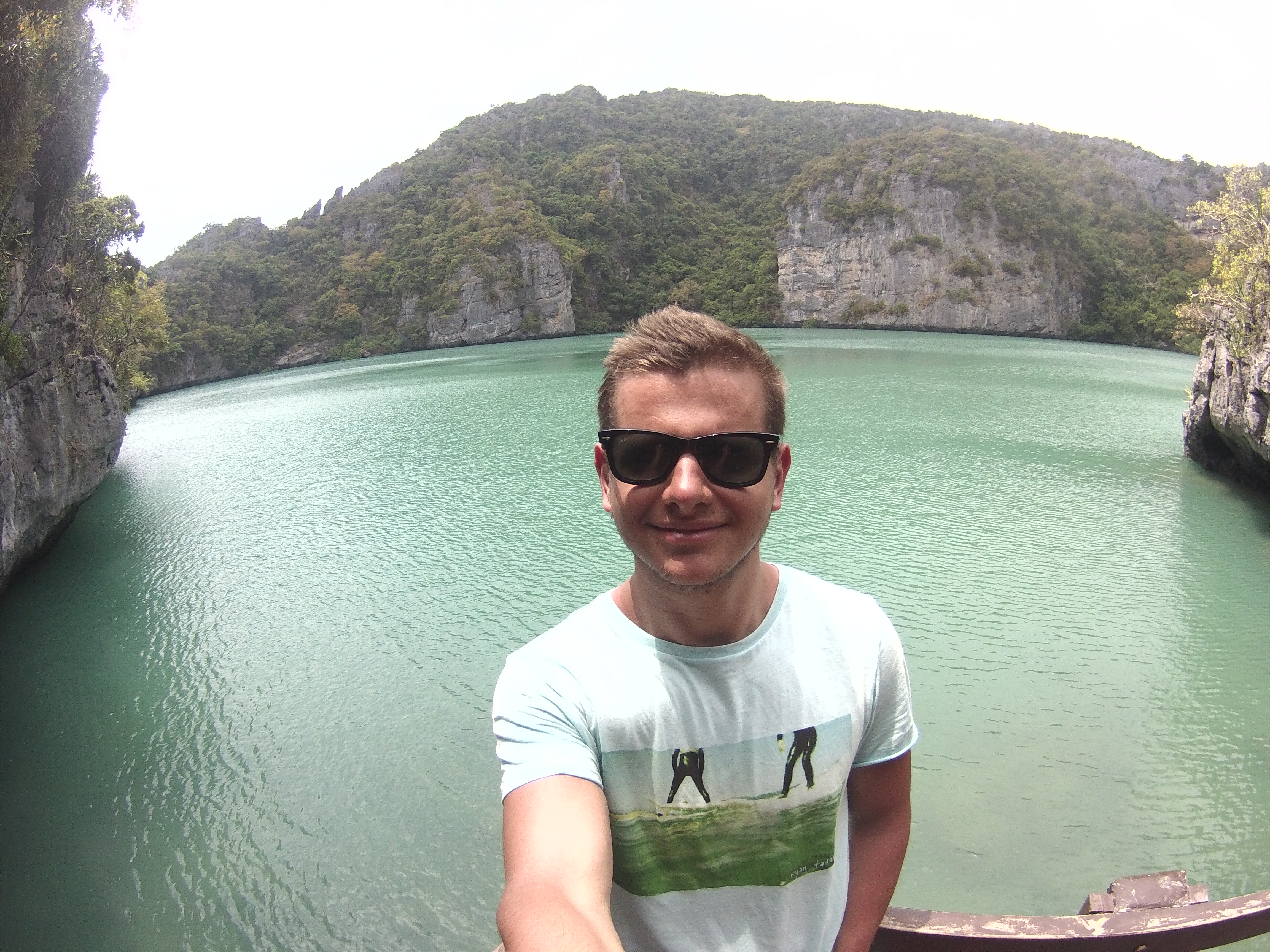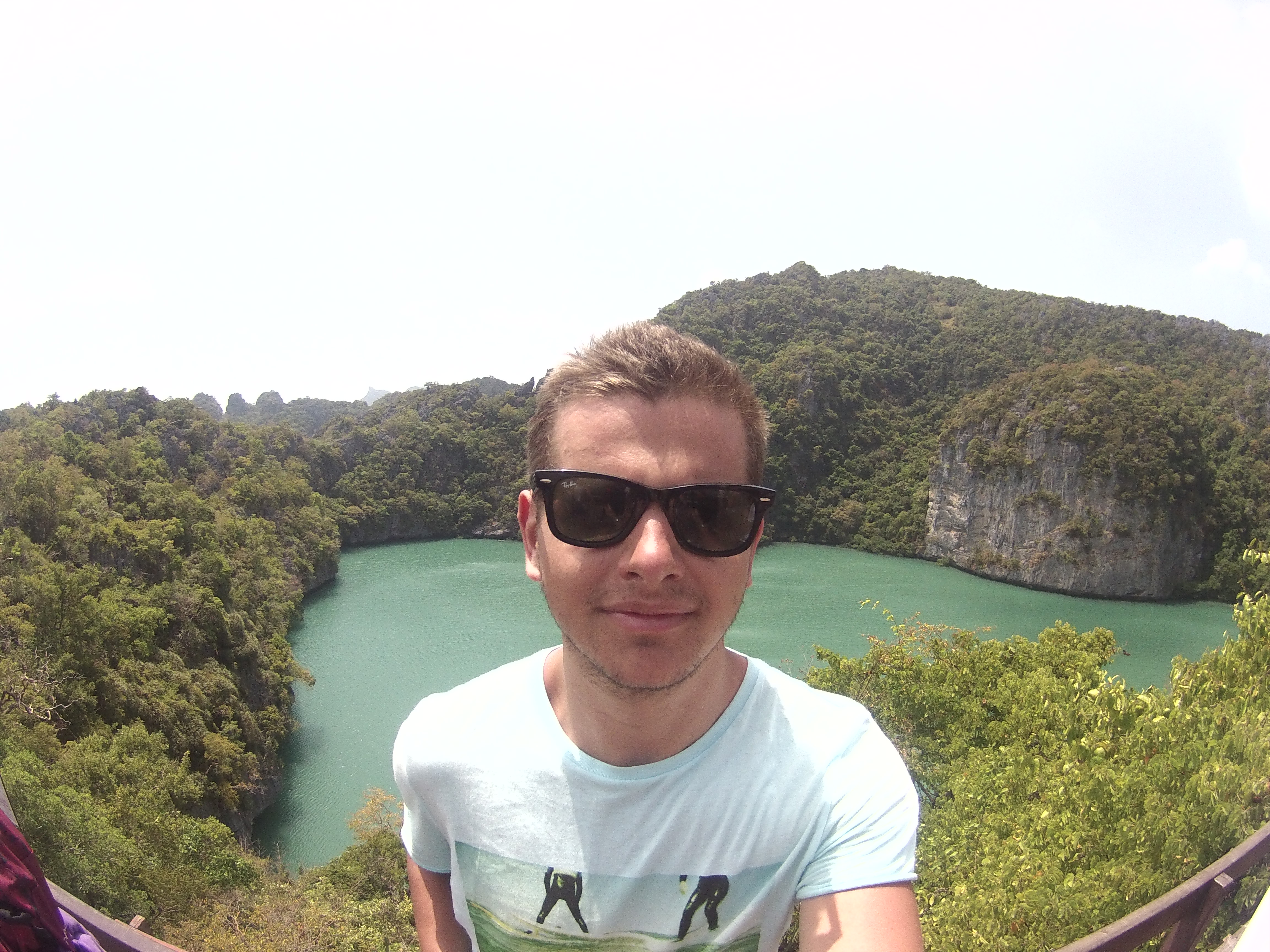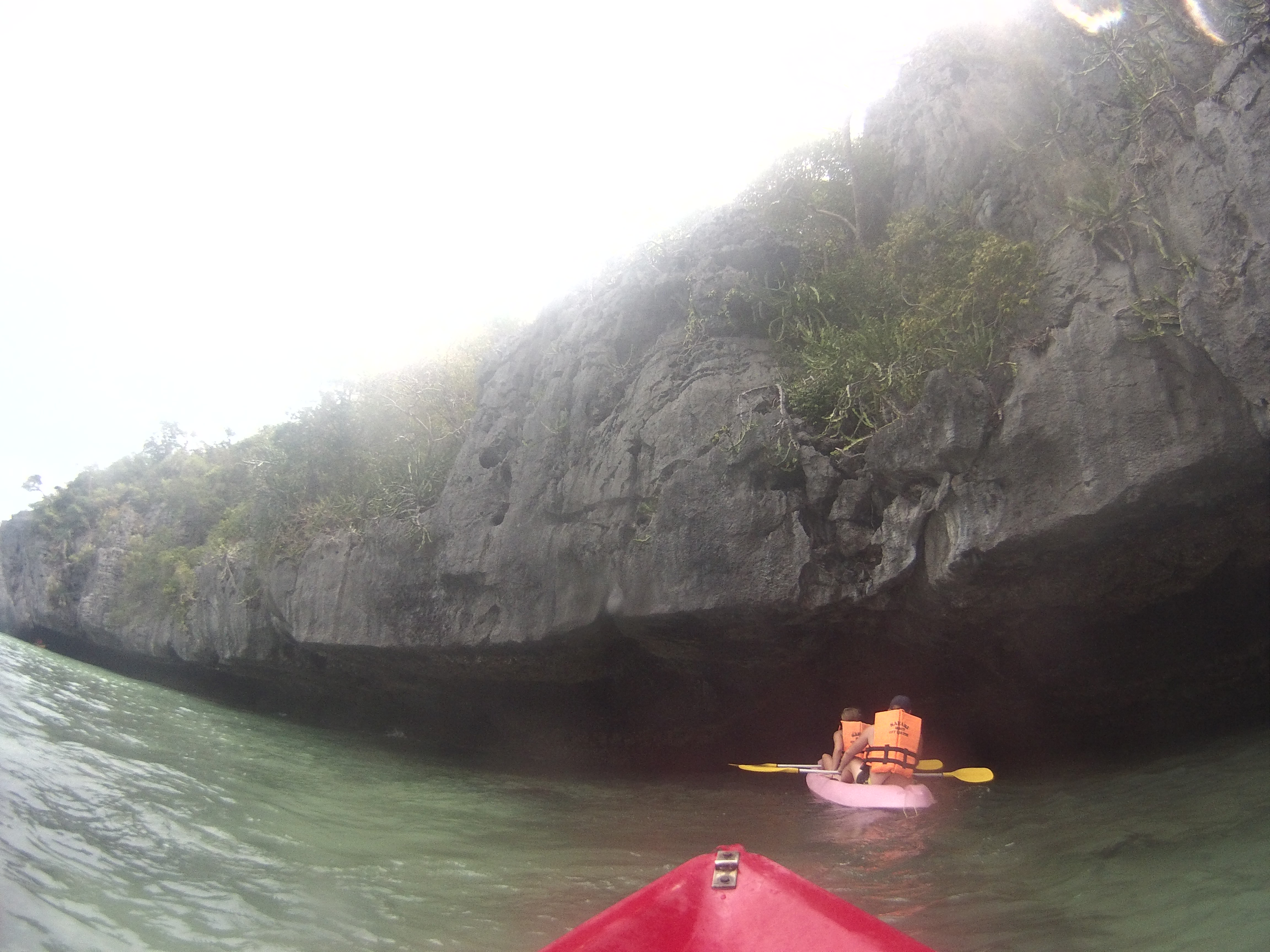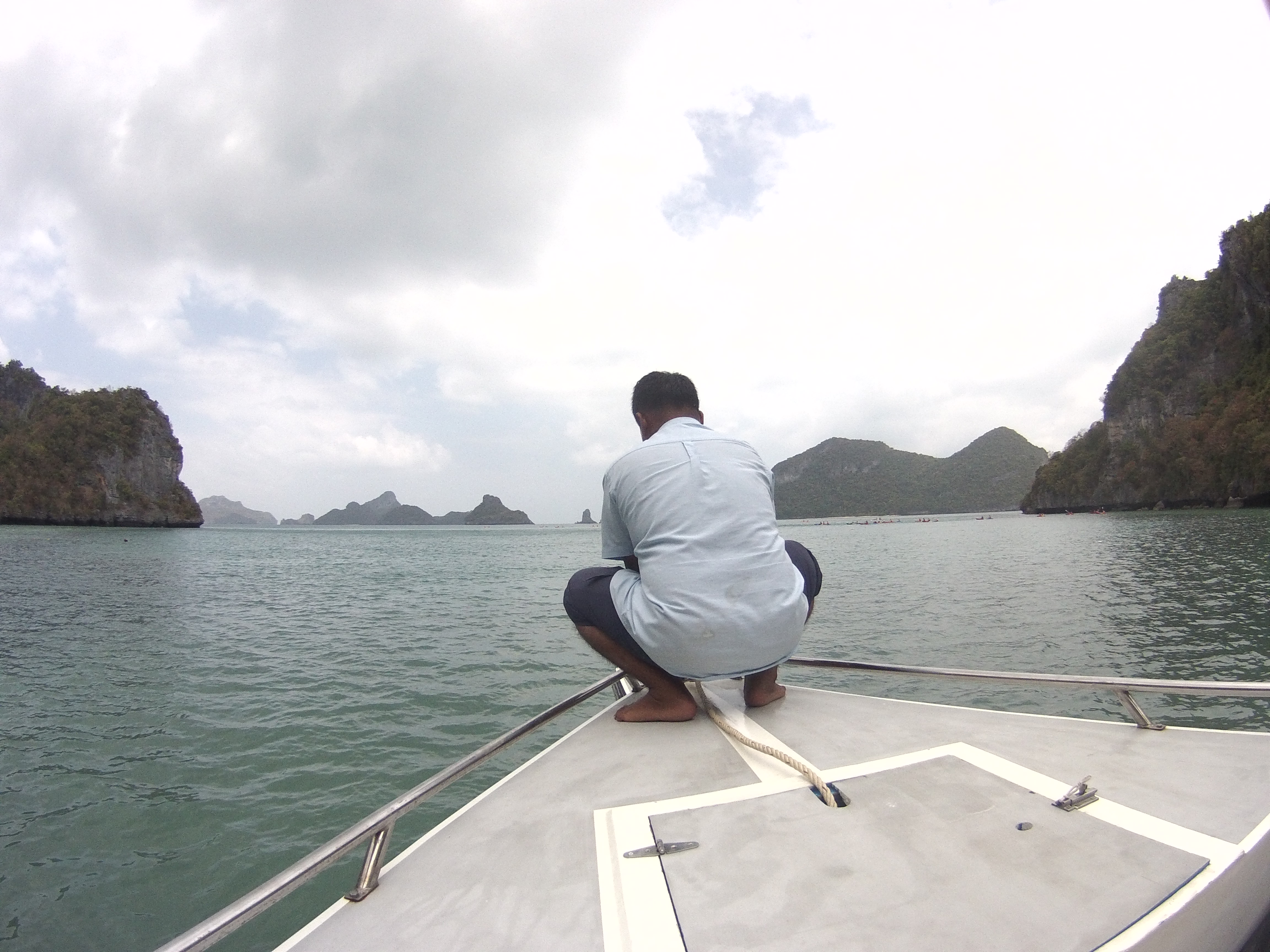 Für den darauffolgenden Tag, den Mittwoch 12.03.2014, hatte ich im Resort eine Tagestour zu dem nahegelegenen Ang Thong Marine National Park, einem Nationalpark bestehend aus 42 kleinen unbewohnten Inseln, gebucht. Mit dem Schnellboot wurden kleine Buchten angefahren, an denen man im kristallklaren Wasser schnorcheln konnte, es wurden atemberaubende Lagunen (Thale Noi) besucht, Kajak gefahren, am Privatstrand Mittag gegessen (Samsao Island), viewpoints besucht und man konnte einfach nur ungestört die Seele baumeln lassen. Um 17 Uhr war der ganze Spaß leider wieder vorbei und ich fuhr von Ko Phangan weiter mit der Fähre Richtung Ko Tao. Da ich für diesen Aufenthalt leider keine Unterkunft im Voraus buchen konnte, hatte ich dann gegen 21 Uhr die Freude vollbepackt ein Hostel zu suchen. Nach 1h Suche, 4km hinter mir und der Bekanntschaft eines Leidensgenossen hatte ich nun im Koh Tao Backpackers Hostel einer der letzten Betten für 2 Nächte gebucht und konnte mit der eben gemachten Bekanntschaft den Abend am Strand (Lotus Bar) inmitten von Feuer-Shows genießen.