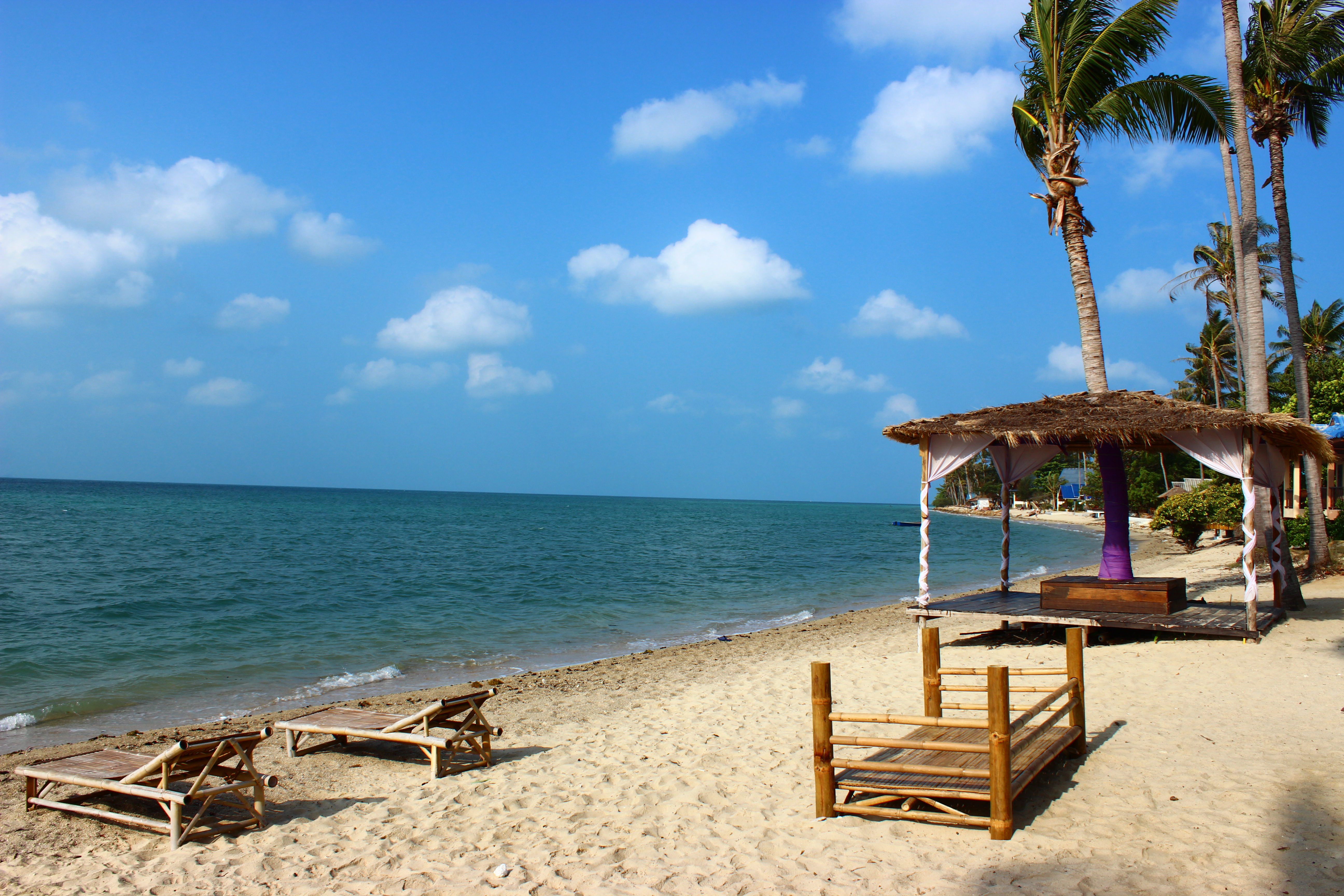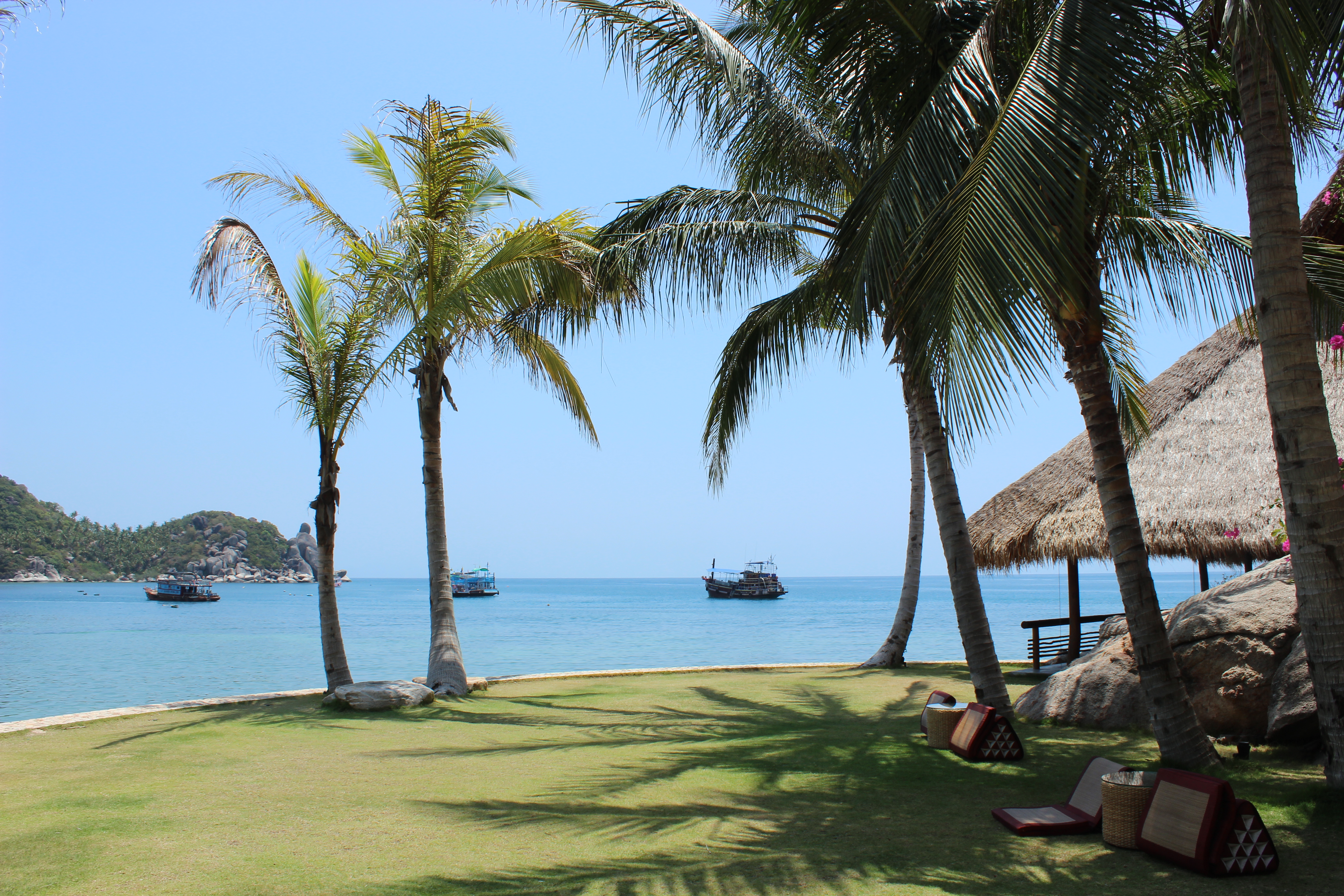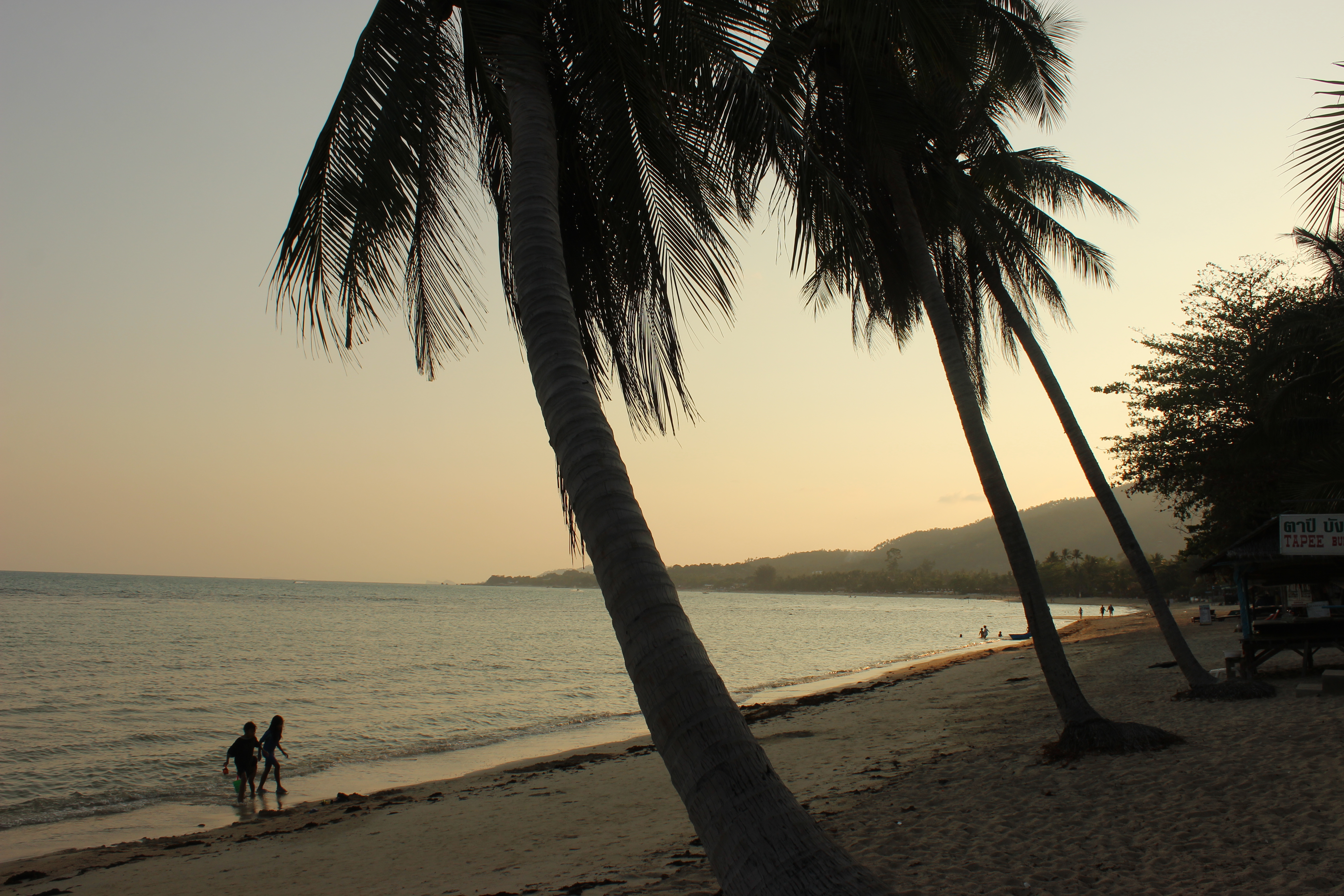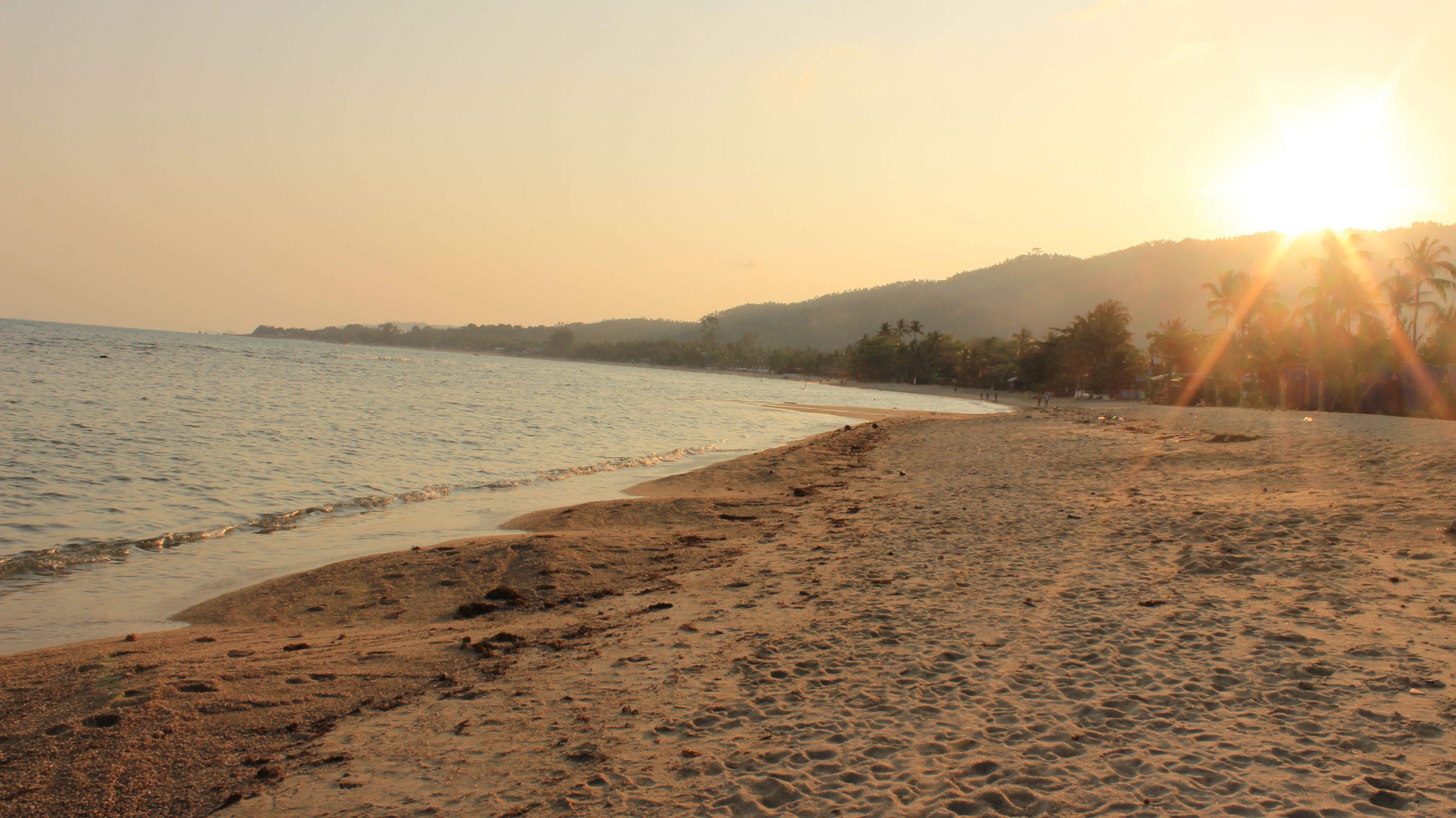 Trotz 6 ereignisreicher Tage in Bangkok freute ich mich nun auf den Süden Thailands, auf Traumstrände, Sonne pur, relaxen und einfach nur die Seele baumen lassen. Erste Station war Ko Samui, die drittgrößte Insel Thailands. Die Anreise von Bangkok aus war lang: Zunächst ging es mit dem Flieger nach Nakhon Si Thammarat, danach mit dem Bus zum Donsak Pier und schließlich mit der Fähre nach Ko Samui. Aber die 7-stündige Anfahrt hatte sich gelohnt: Der Blick aus dem bereits im Voraus gebuchten Bungalow im Weekender Villa Beach Resort war traumhaft: Sonne, Pool, Strand, Meer – was will man mehr. Dementsprechend hieß es für die letzten Stunden entspannen und den Sonnenuntergang genießen.