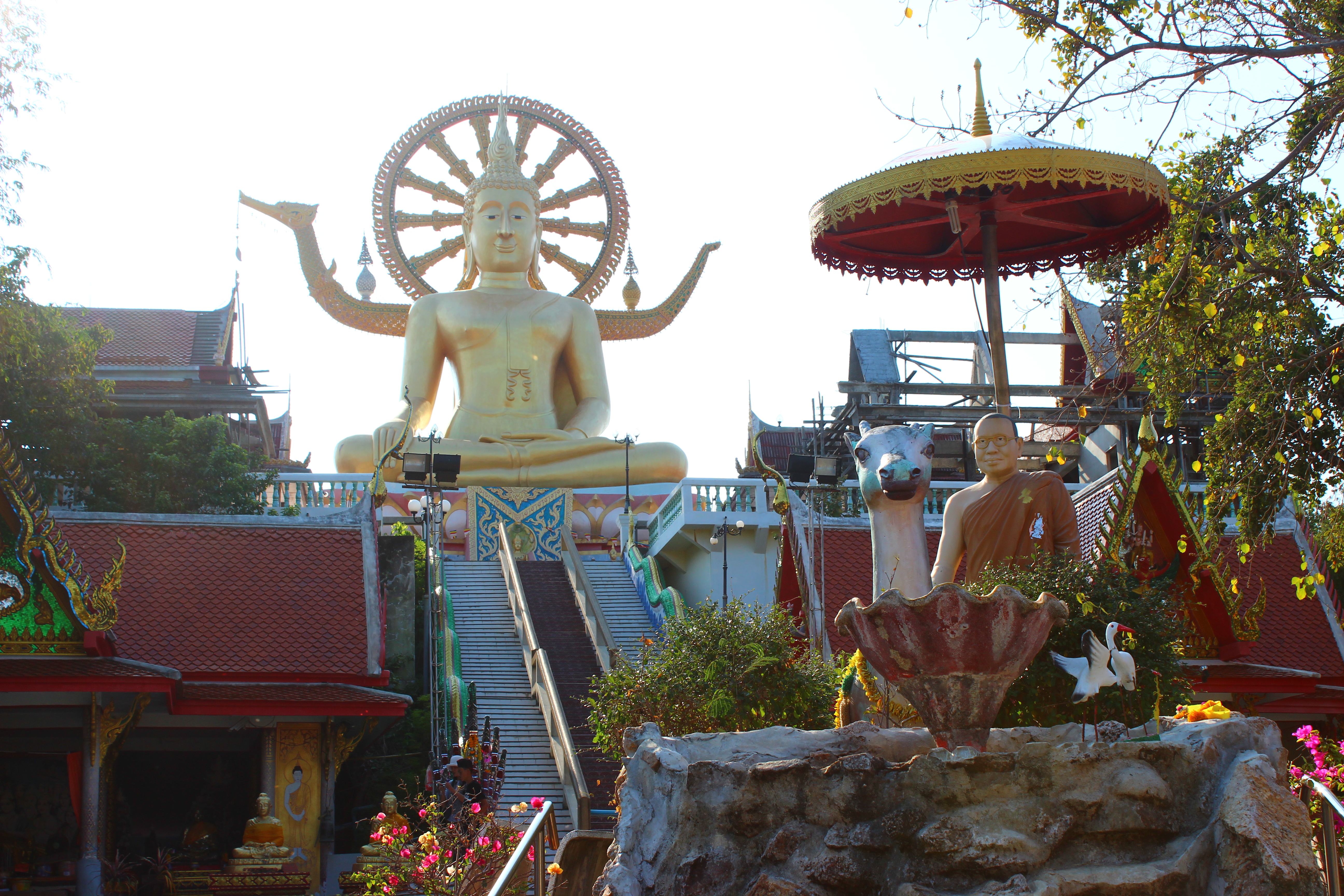 Am nächsten Tag mietete ich mir einen Roller, um so die Insel erkunden zu können. Zuerst ging es zu dem Na Muang Wasserfall (Na Muang Safari Park), welcher sich mitten im Dschungel befand und eine Möglichkeit des Bades im Dschungel bot. Zudem hatte ich von dort aus einen wunderbaren Weitblick auf den Süden Ko Samuis. Da der Fußweg durch den Dschungel bei ca. 33° C nicht gerade ein Spaziergang war, konnte man sich auch per Elefant dorthin transportieren lassen. Weitere Aktivitäten wie Elephant Trekking oder diverse Animals Show konnten gegen einen Aufpreis in dem Na Muang Safari Park gebucht werden. Weitere Stationen an diesem Tag waren u.a. die Tempelanlage Wat Khunaram, welche eine über 30 Jahre alte Mumie des Mönchs Lung Por Daeng beherbergt („Mummified Monk“), Big Buddha im Nord-Osten der Insel, Fisherman’s Village – ein altes Fischerdörfchen mit unzähligen Lokalen und Einkaufsmöglichkeiten, einige weitere viewpoints der Insel und natürlich die schönen Strände Ko Samuis. Am Abend vergnügte ich mich dann am Chaweng Beach Night Market: die unzähligen Köstlichkeiten Thailands verkosten, nette Unterhaltungen führen und am Ende des Tages die wohlverdiente Fußmassage genießen.